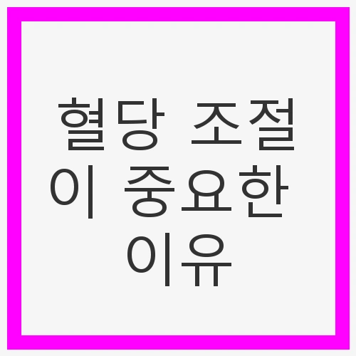 혈당 조절이 중요한 이유